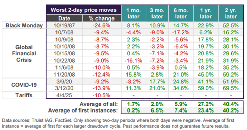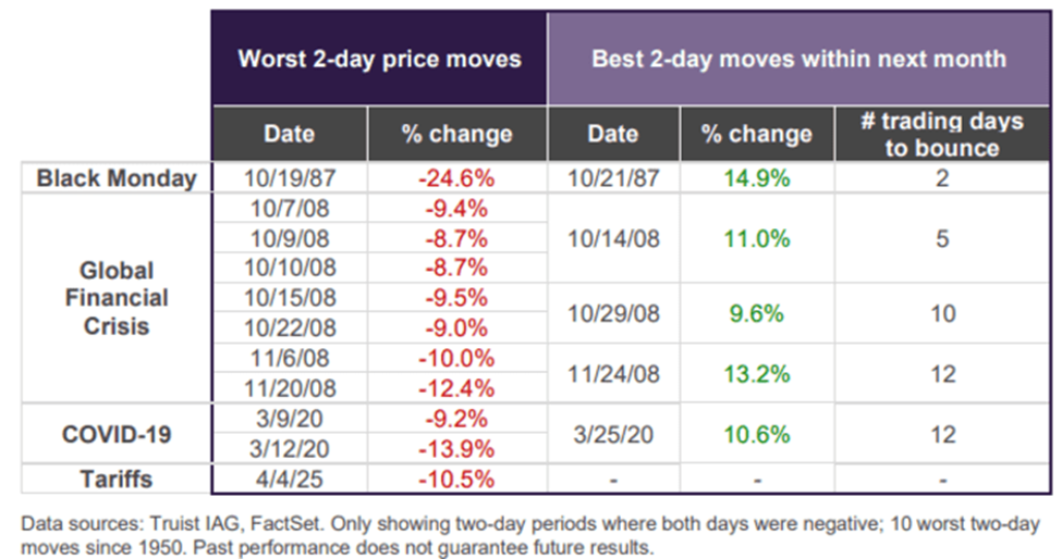 History shows that after major selloffs, markets tend to recover in 1 month to 2 years.